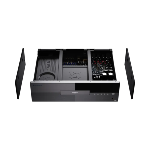 De robuuste metalen behuizing (15,4 kg) met interne afscherming minimaliseert trillingen, ruis en storingen. Een speciaal ontworpen voeding met lage ruis garandeert stabiele prestaties. Het hoge gewicht en de dubbele structuur onderstrepen de bouwkwaliteit.