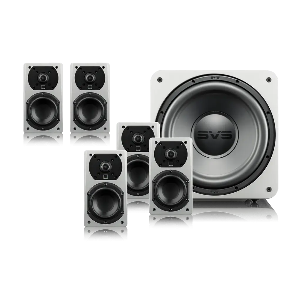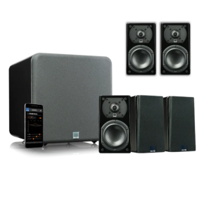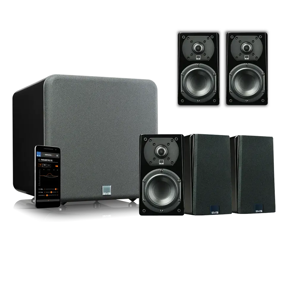 The speakers belong to SVS’ Prime Series and exceed expectations of such a small and versatile speaker, providing a world-class listening experience. Combined with the acclaimed SB-1000 Pro subwoofer and 325 /820+ watts of power, this 5.1 system delivers a complete multi-channel experience for both movies and music. Indeed, the SVS Prime Satellite system arranges audiophile precision of sound to hit every note, bringing every scene to life thanks to cinematic dynamics.