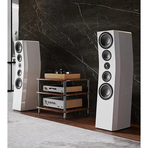 Never has this fusion of design elements existed in a single speaker. Acoustically centered time alignment, diamond coated aluminum dome tweeters, force balanced woofer array, and other advancements embody an uncompromising approach to floorstanding speaker design.